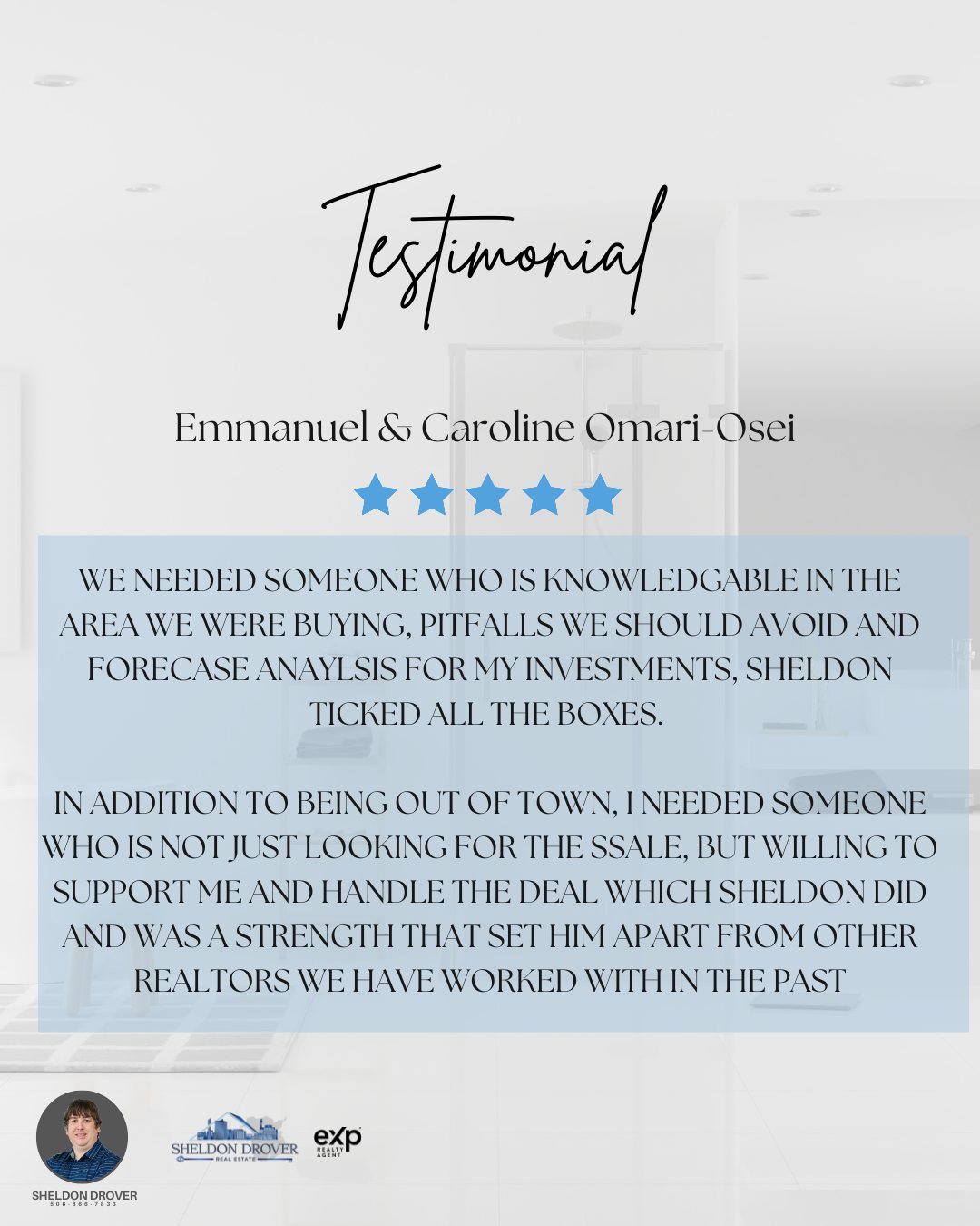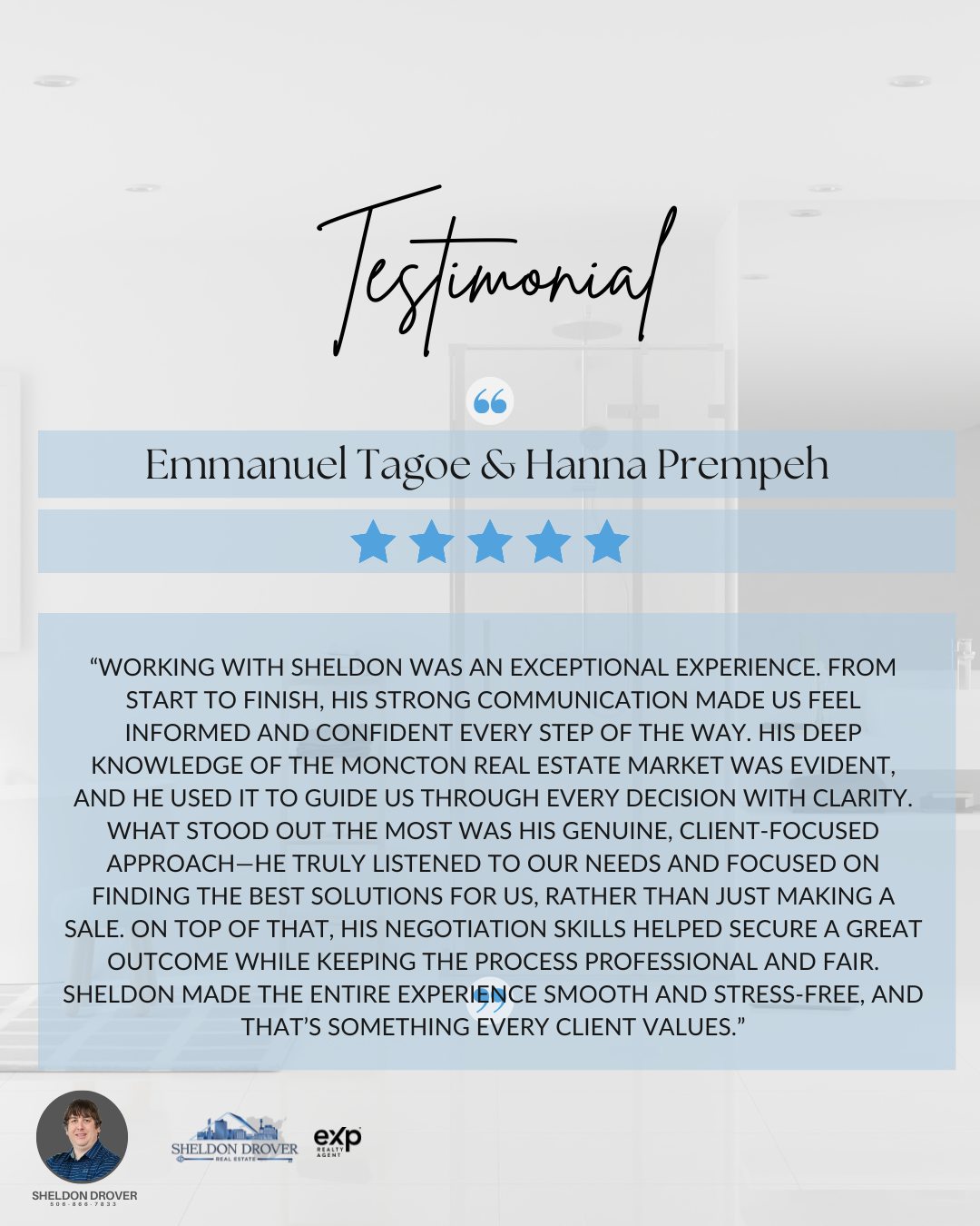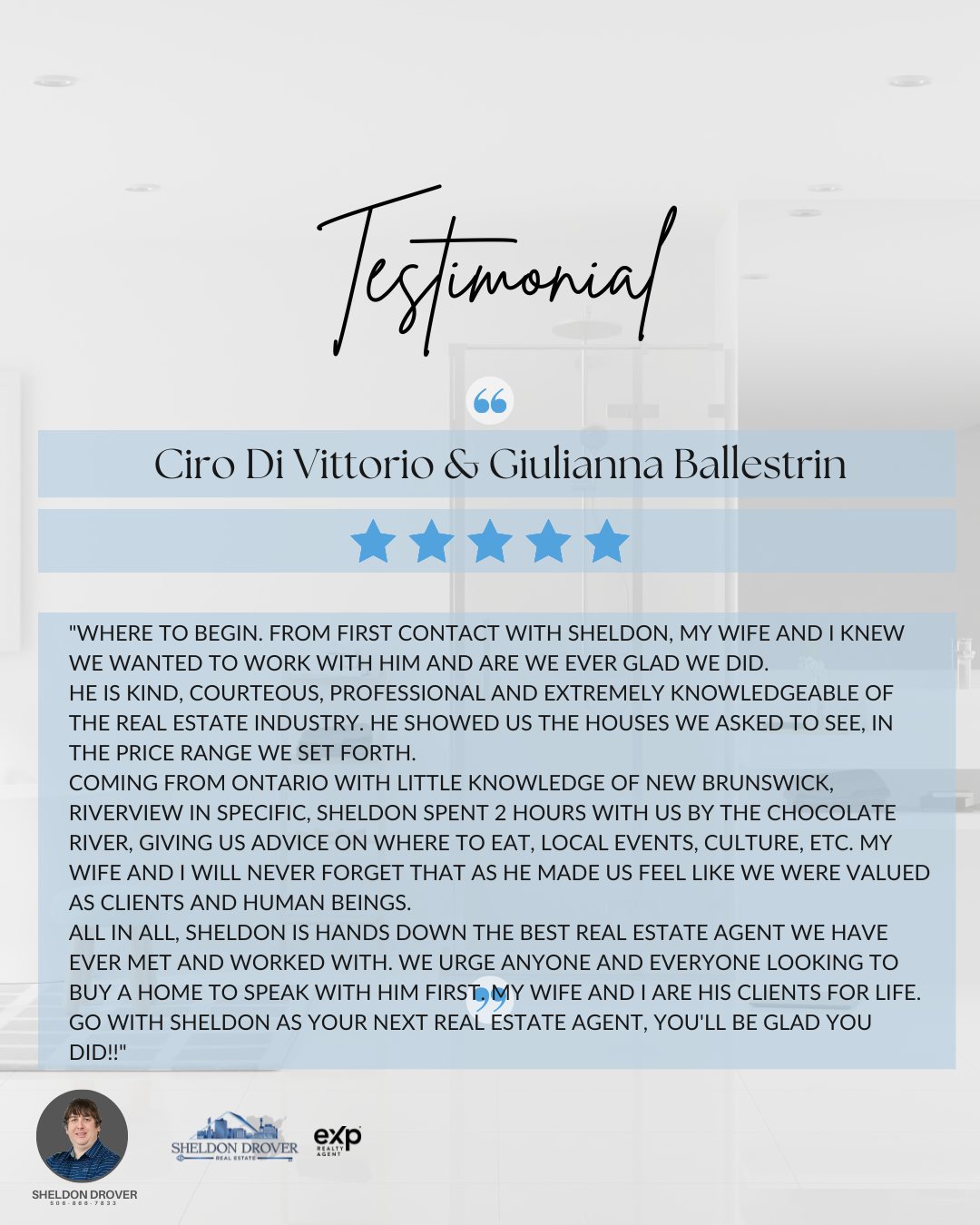 I’m Sheldon Drover, a REALTOR® with eXp Realty, proudly serving Moncton, Dieppe, Riverview, Shediac, and the surrounding communities. My mission is simple: to help you find the place where life happens—whether that’s your very first home, your next chapter, or your dream relocation to New Brunswick.