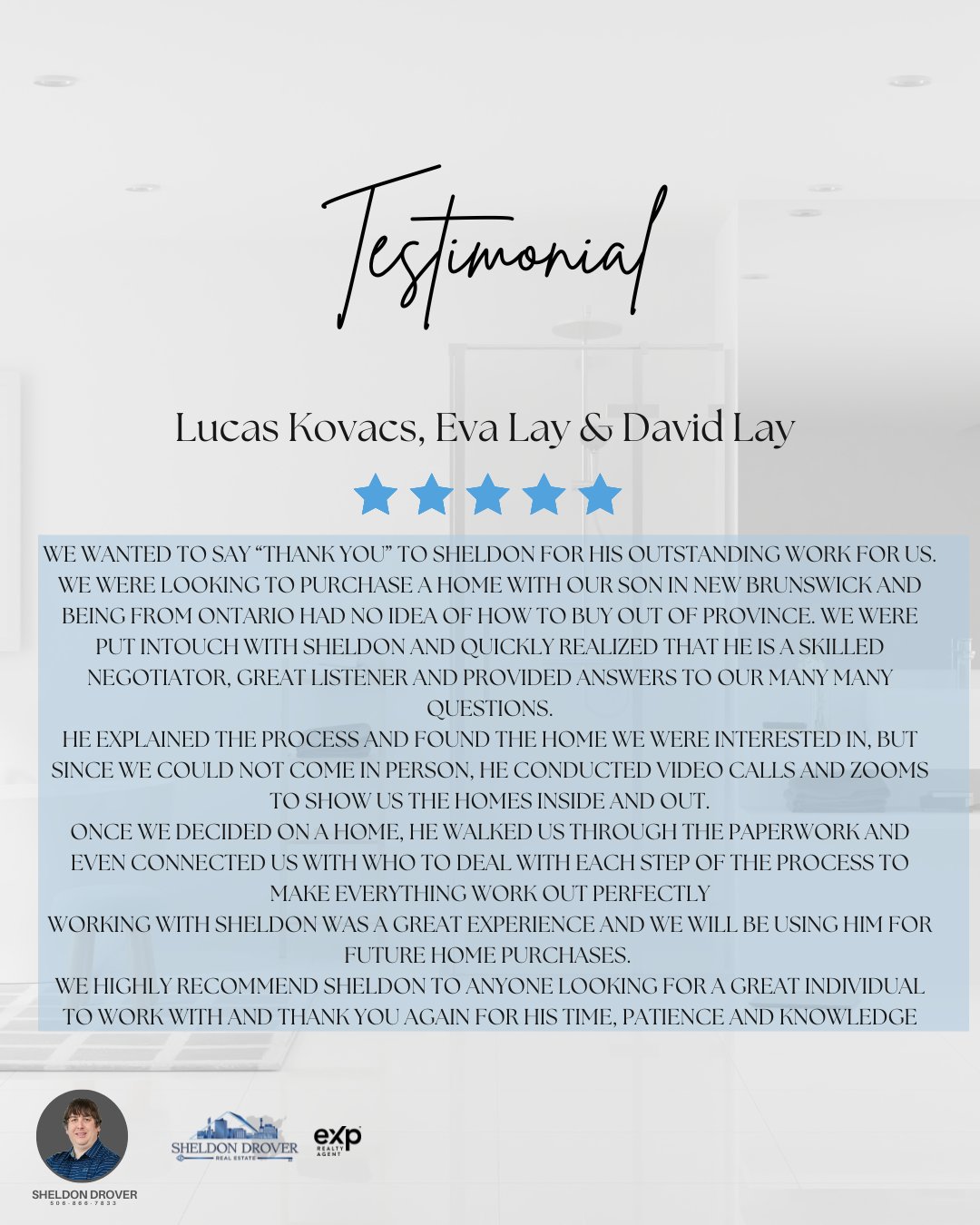 I’m Sheldon Drover, a REALTOR® with eXp Realty, proudly serving Moncton, Dieppe, Riverview, Shediac, and the surrounding communities. My mission is simple: to help you find the place where life happens—whether that’s your very first home, your next chapter, or your dream relocation to New Brunswick.